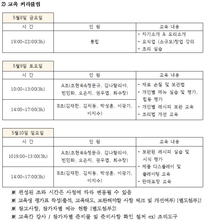 2) 일정 및 커리큘럼 초안은 보내드린 사진에 있습니다.